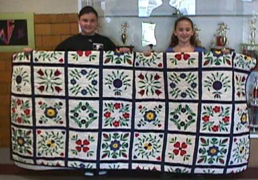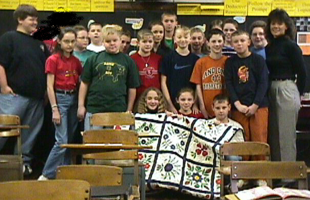 Mrs. Havens and class with their quilt.